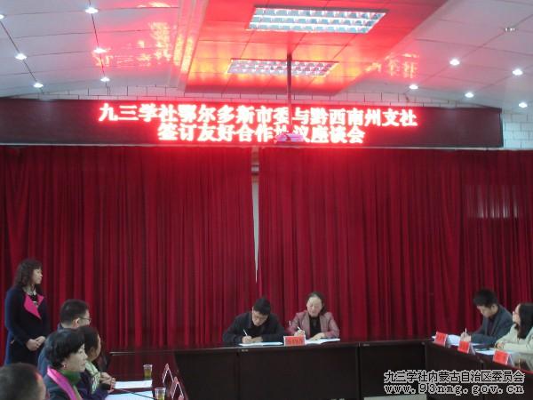 2016年3月14日,九三学社鄂尔多斯市委与黔西南“星火计划、科技扶贫”试验区九三学社州支社友好合作签约仪式在贵州省黔西南州兴义市举行。