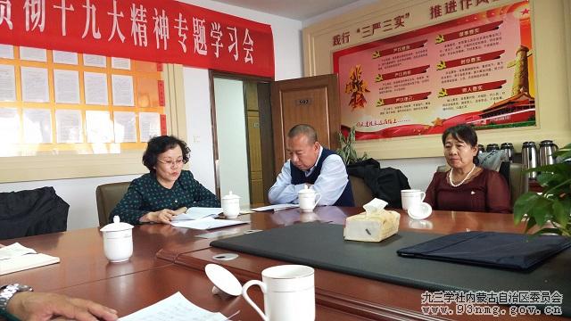 2017年11月5日下午,九三学社乌兰察布市委会主委李洁、副主委刘建明、任慧京,秘书长王俊平,组织市委会委员、及部分新老社员集体学习十九大报告精神。会上还安排了下一阶段的工作任务。任慧京副主委讲述了社中央组织的社史培训情况,聆听了刚刚参加完井冈山红色教育社员的学习体会。会上大家畅所欲言,纷纷表示十九大好似一场及时雨,指明了各行各业的发展目标及行动方向。
