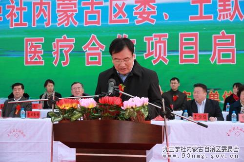 在3月11日下午,九三学社内蒙古区委与土默特左旗人民政府“九地合作”医疗合作项目在呼和浩特市土默特左旗启动,并签署 “九地合作” 《土左旗医疗服务协议书》。自治区政府副主席、九三学社内蒙古区委主委刘新乐出席。