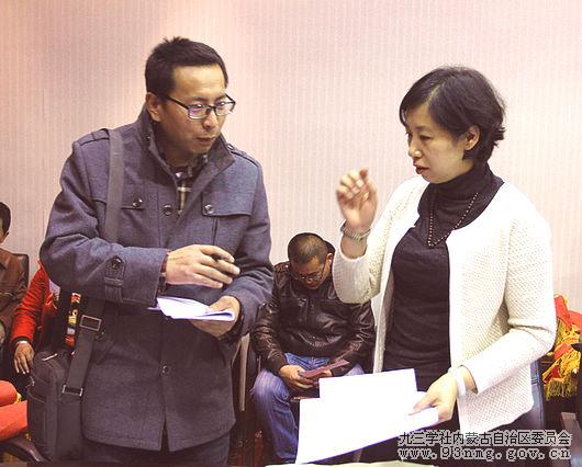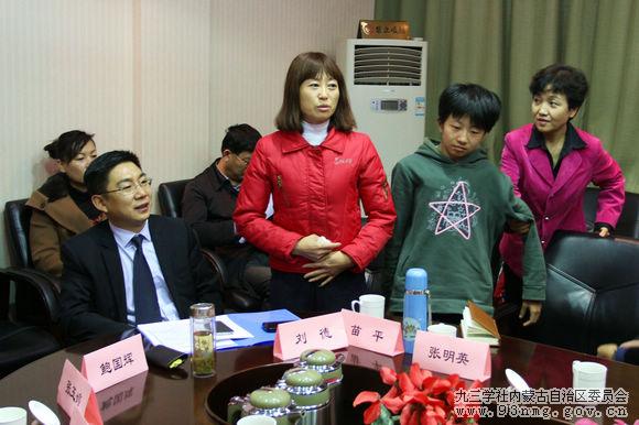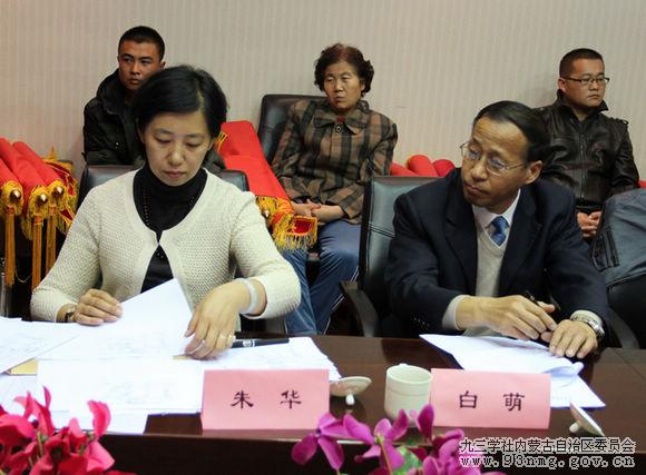 九三学社内蒙古自治区副主委边占喜与董慧芬亲切交谈
