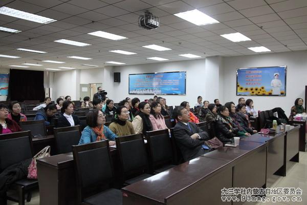 2015年3月9日,为庆祝“三八妇女节”,增强社员凝聚力,丰富女社员生活,九三学社内蒙古区委妇委会在内蒙古医科大学第二附属医院会议室举办了“关爱女性,从健康开始”的养生保健营养知识讲座,近30位女社员参加活动。活动由妇委会主任张瑞主持,九三学社内蒙古区委副主委霍洪军出席了活动。
